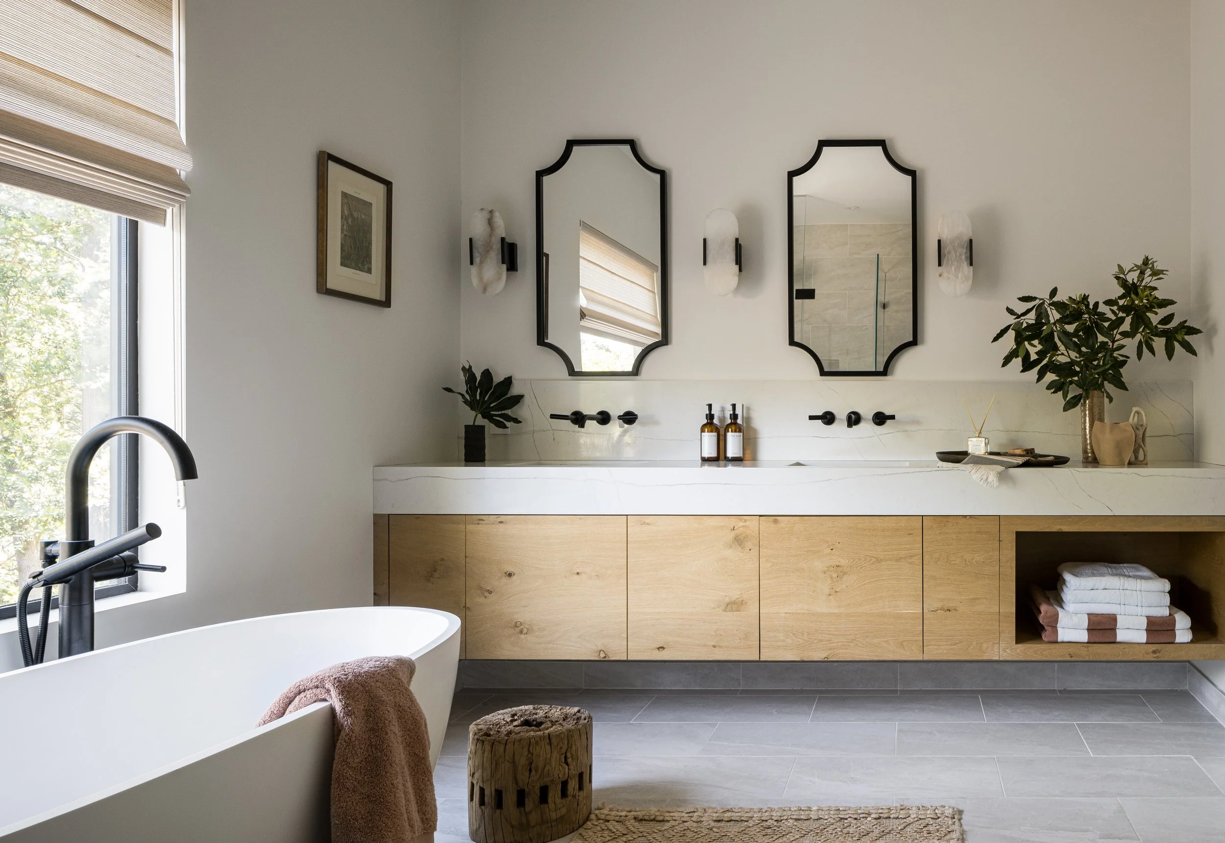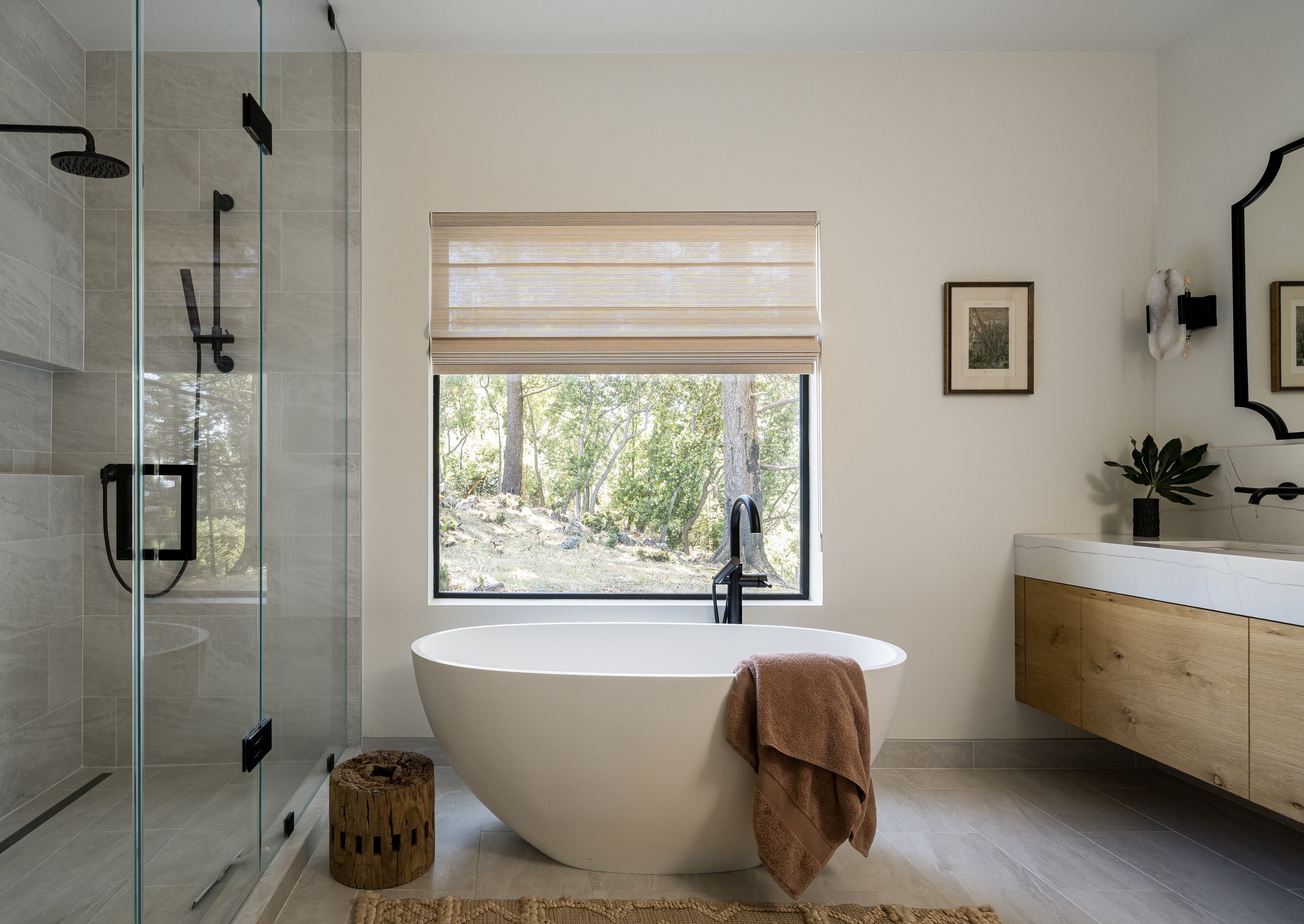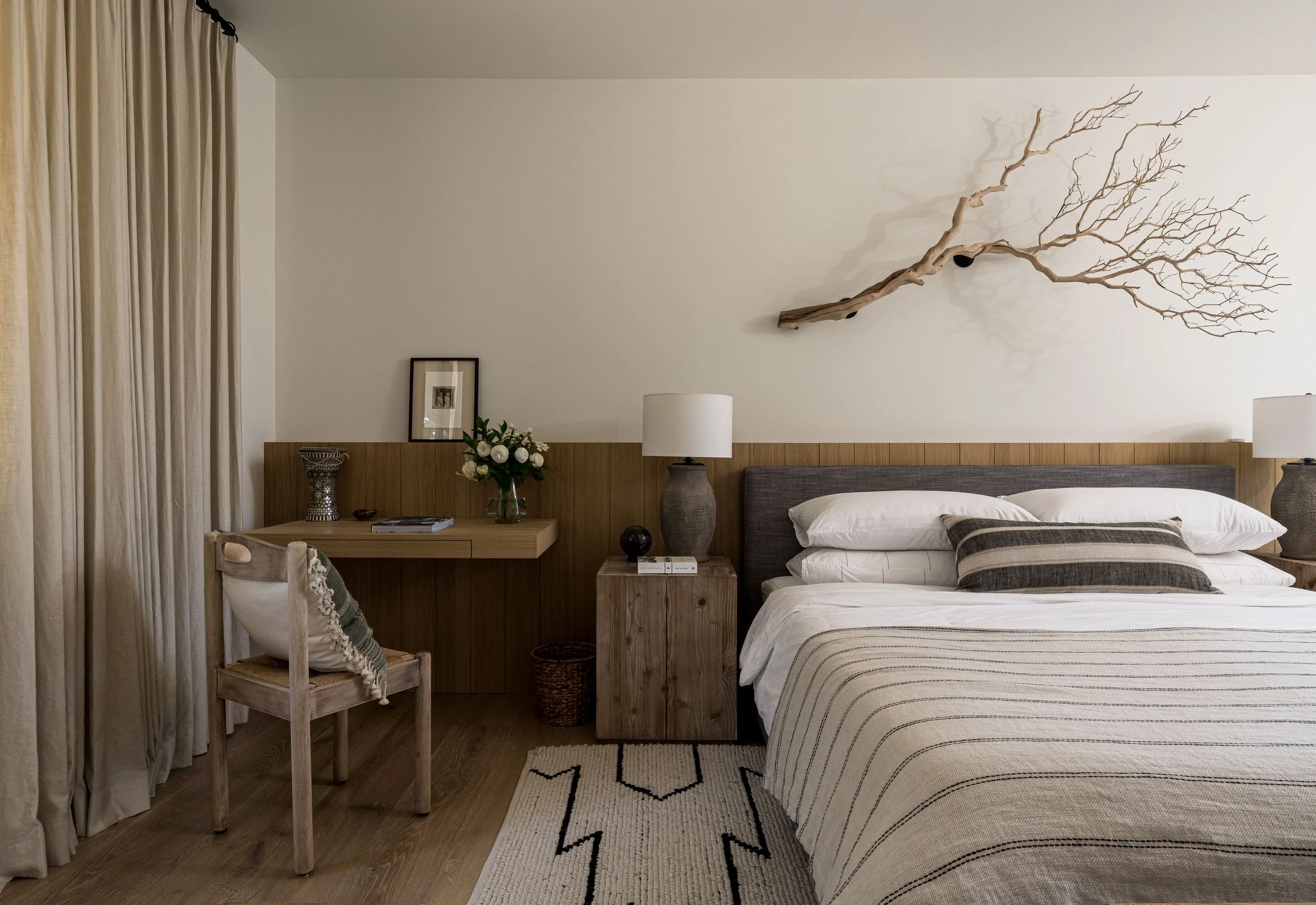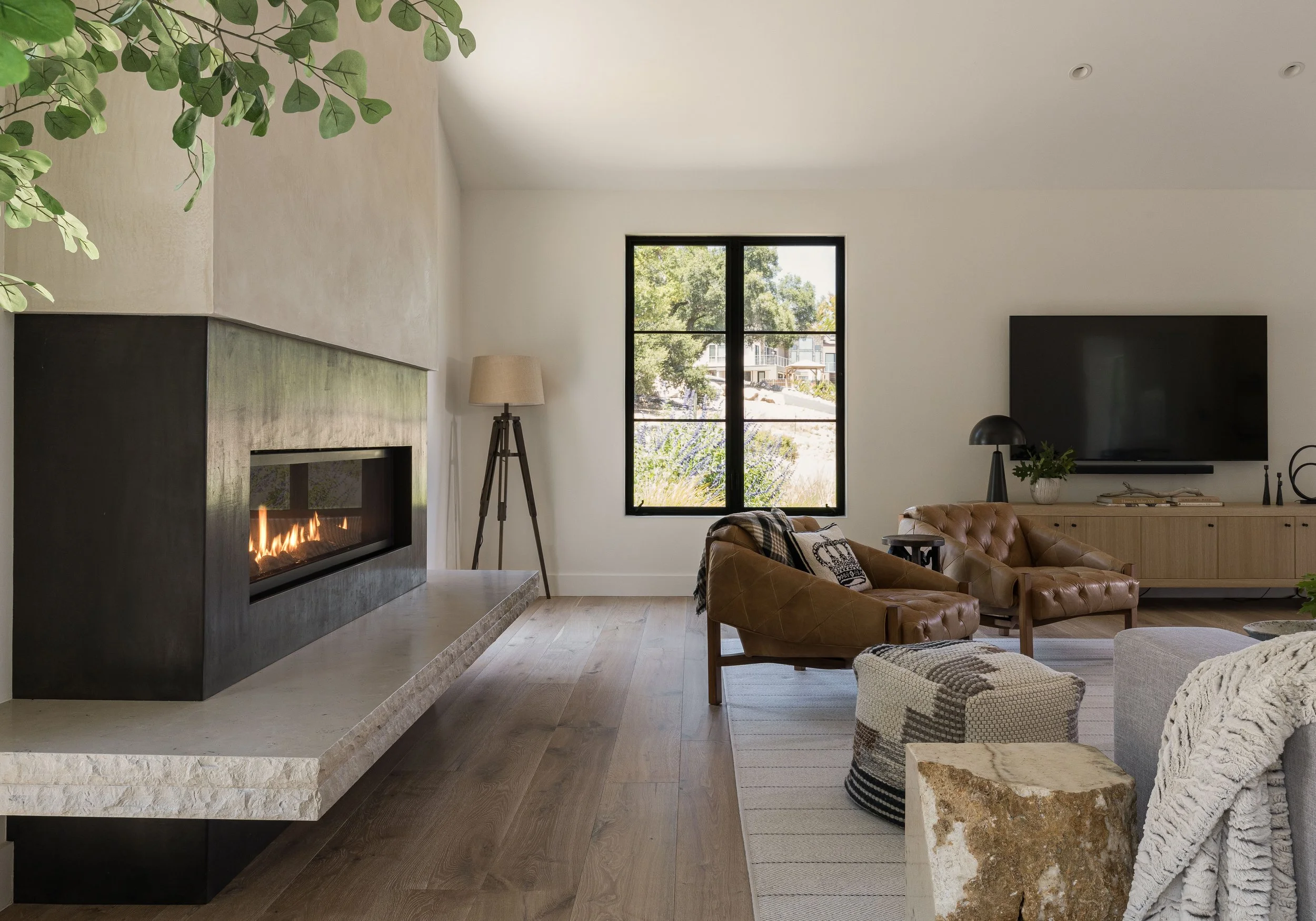 This 3,200 square foot home was built from the ground up, after the previous dwelling was destroyed in a wildfire. The concept for the home was inspired by local barns and the surrounding landscape. Simple forms, authentic textures and a palette of greens and ochres combine to create a space ideal for relaxing and reconnecting with family and friends.